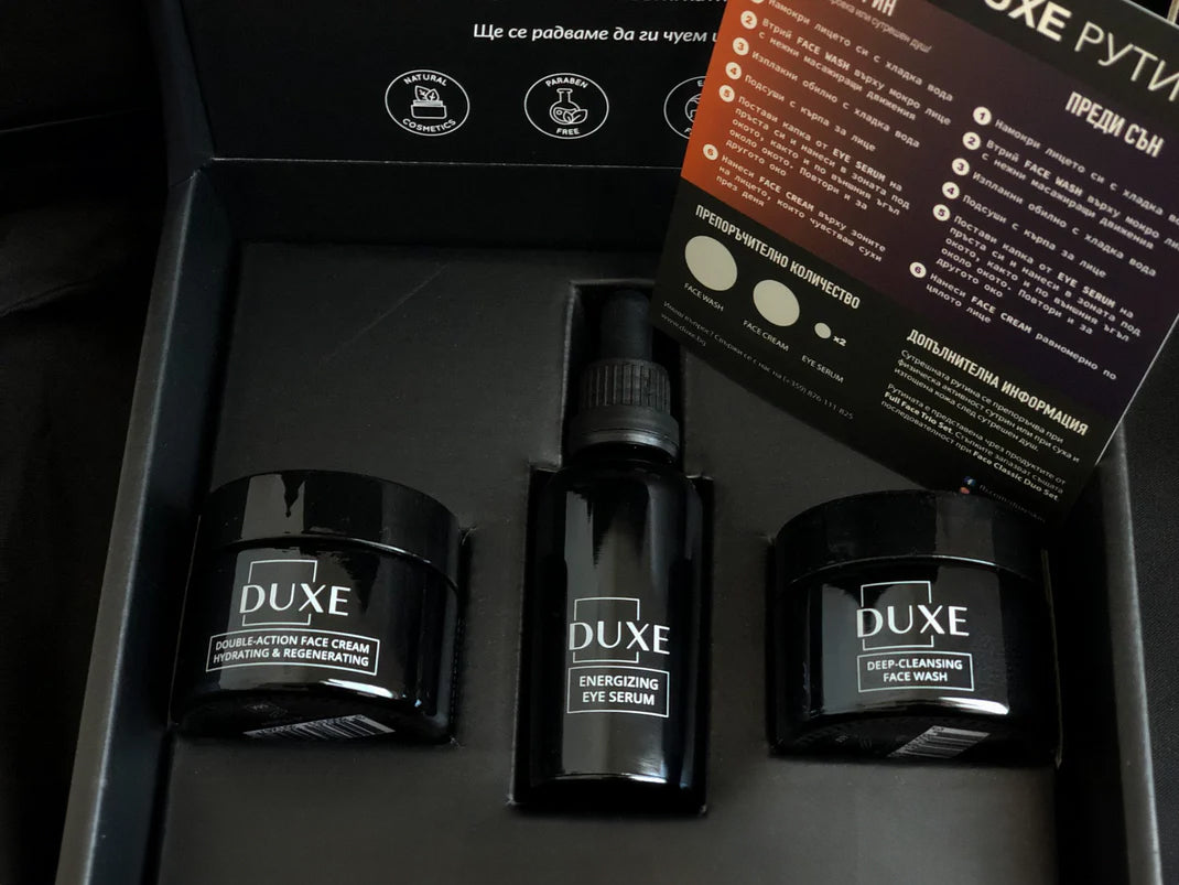 Съчетавайки натурални съставки, дерматологичен подход и премиум изработка, DUXE създава нов стандарт в мъжката грижа в България.